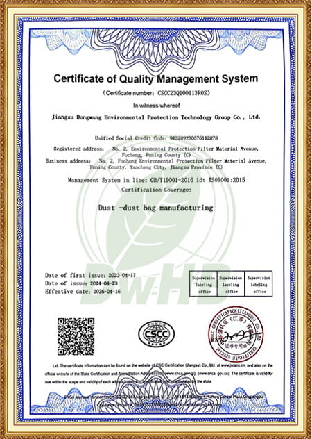 Die Jiangsu Dongwang Environmental Protection Technology Group Co., Ltd., mit seinen hochmodernen Produktionsanlagen und einem erfahrenen Team, widmet sich der Bereitstellung hochwertiger PTFE-Nadelfilterfilter-Filterbeutel für Verbrennungsbeutel weltweit. Das Engagement des Unternehmens für Innovation und Exzellenz stellt sicher, dass seine Produkte die strengsten Leistungsstandards entsprechen.
